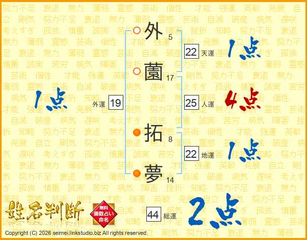 外(5画)薗(17画) 拓(8画)夢(14画)
