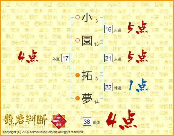 小園拓夢さんの総運は38画の4点!