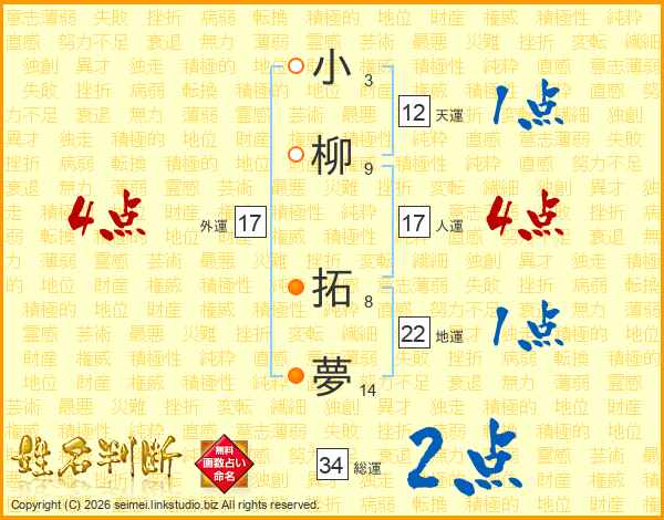 小柳拓夢さんの外運は17画の4点!