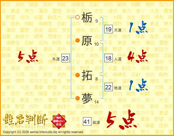 栃(9画)原(10画) 拓(8画)夢(14画)