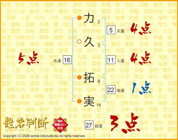 力久拓実さんの総運は27画の3点!