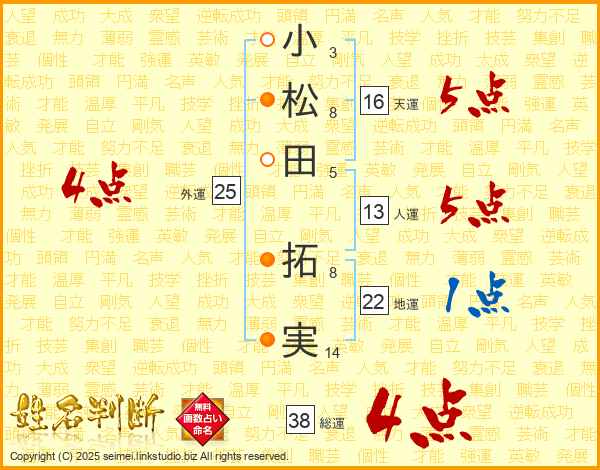 小松田拓実さんの総運は38画の4点!