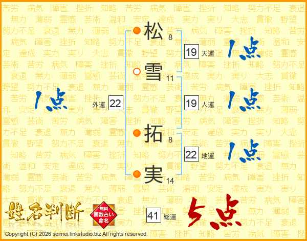 松雪拓実さんの総運は41画の5点!