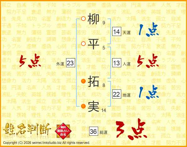 柳平拓実さんの天運は14画の1点!