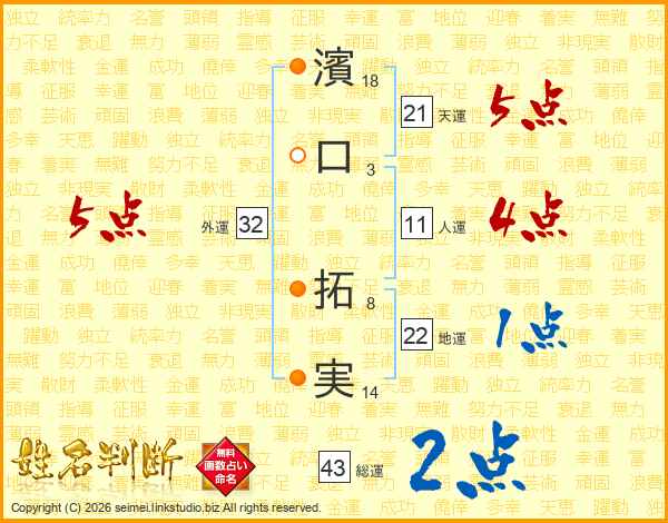 濱口拓実さんの天運は21画の5点!