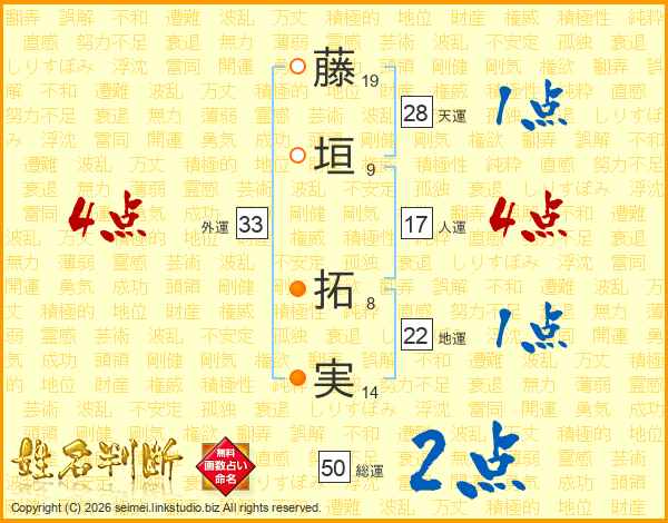 藤垣拓実さんの外運は33画の4点!