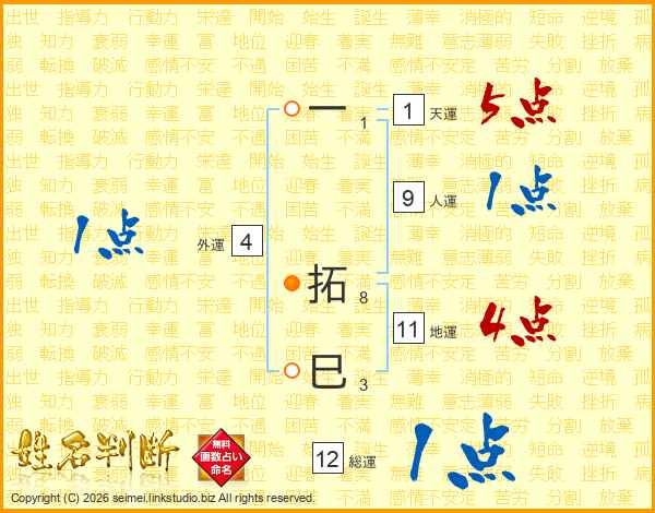 一拓巳さんの総運は12画の1点!