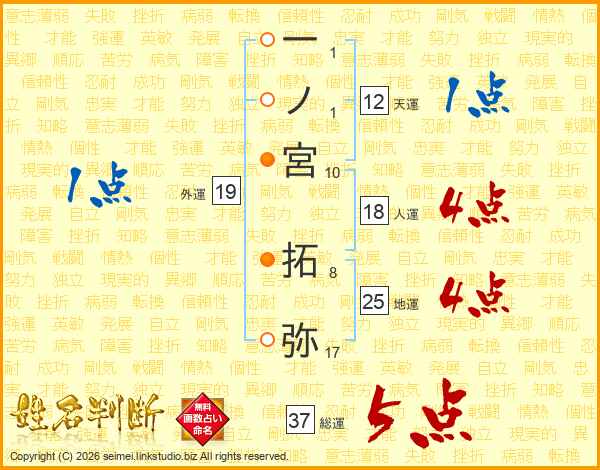 一ノ宮拓弥さんの総運は37画の5点!