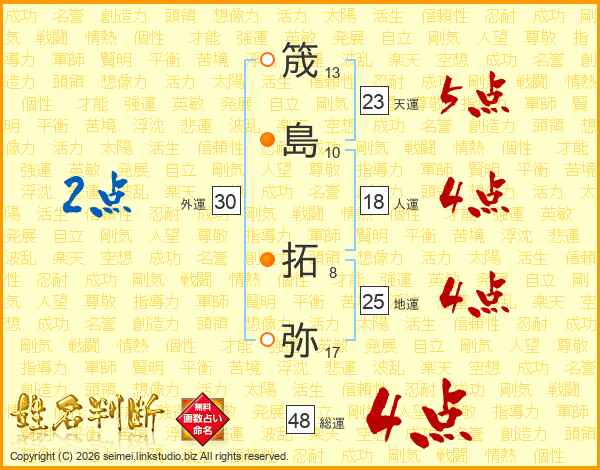 筬島拓弥さんの地運は25画の4点!