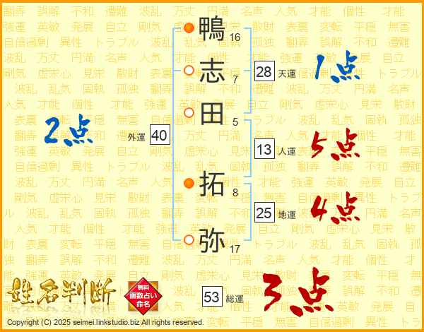 鴨志田拓弥さんの総運は53画の3点!