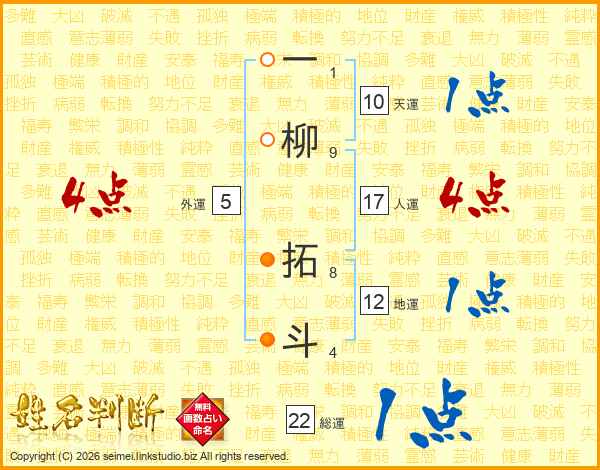 一(1画)柳(9画) 拓(8画)斗(4画)