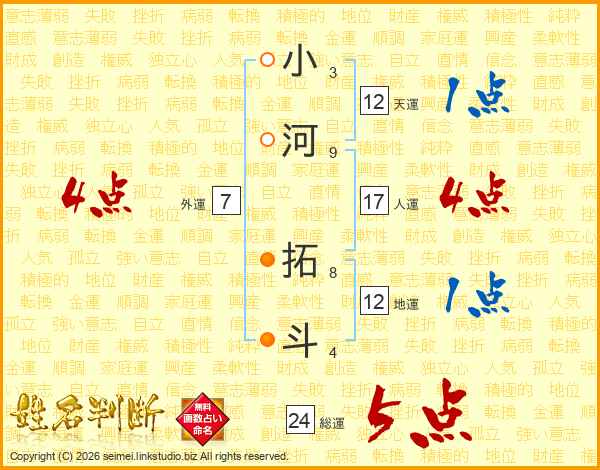 小河拓斗さんの総運は24画の5点!