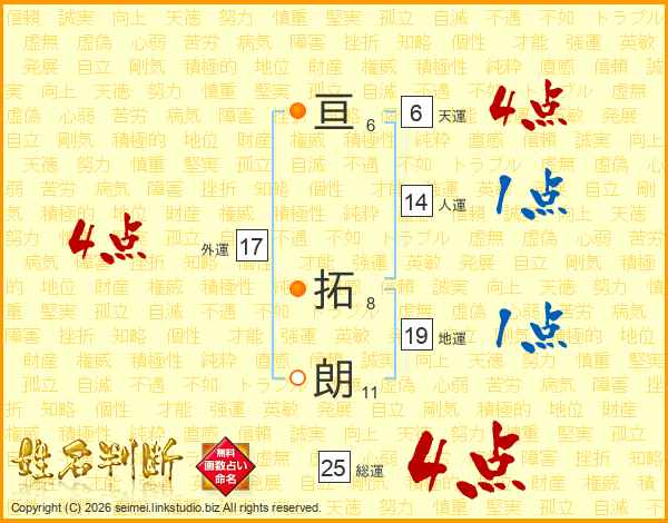 亘拓朗さんの総運は25画の4点!