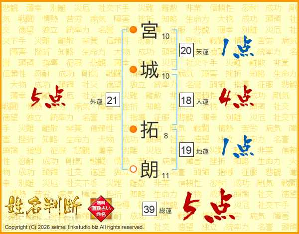 宮城拓朗さんの総運は39画の5点!