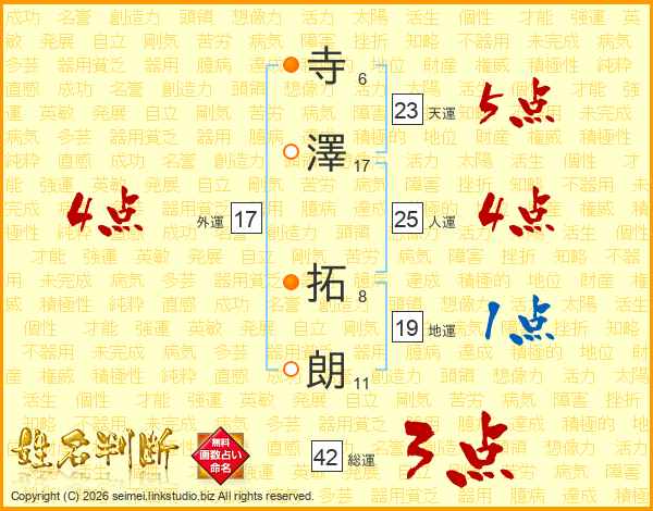 寺澤拓朗さんの外運は17画の4点!