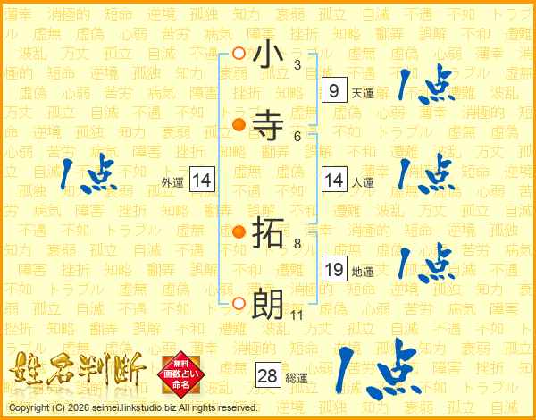 小寺拓朗さんの総運は28画の1点!