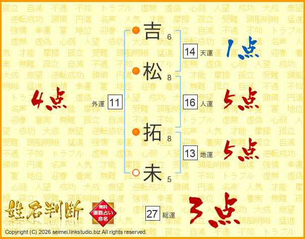 吉松拓未さんの総運は27画の3点!