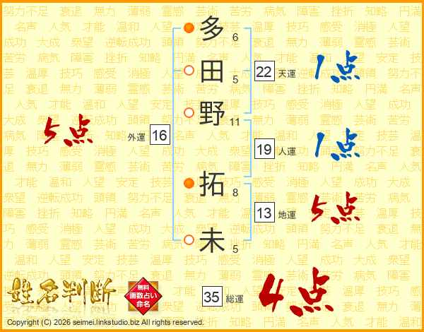 多田野拓未さんの総運は35画の4点!