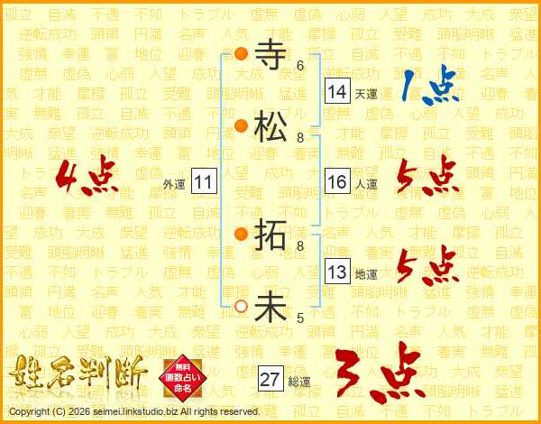 寺松拓未さんの天運は14画の1点!