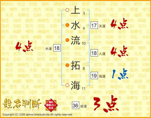 上水流拓海さんの天運は17画の4点!
