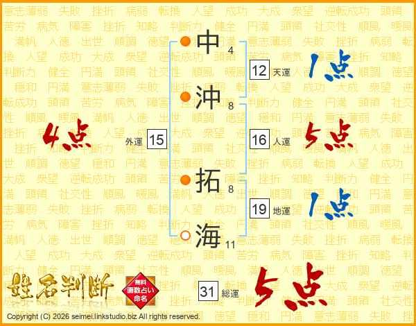 中沖拓海さんの総運は31画の5点!
