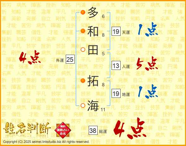 多和田拓海さんの総運は38画の4点!
