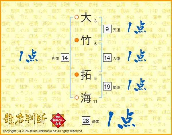 大竹拓海さんの人運は14画の1点!