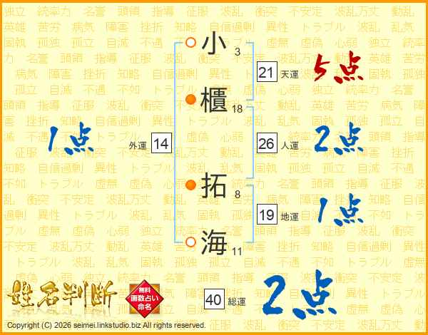 小(3画)櫃(18画) 拓(8画)海(11画)