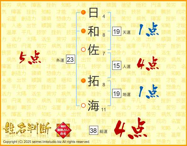 日和佐拓海さんの総運は38画の4点!