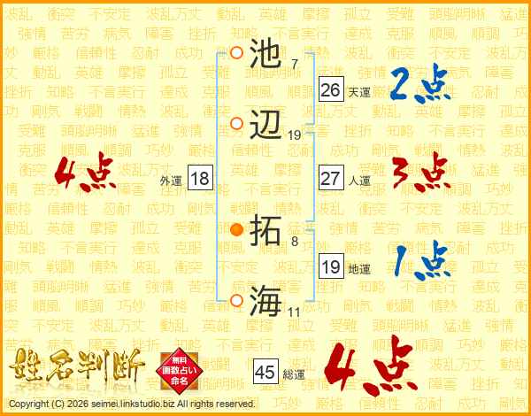 池辺拓海さんの天運は26画の2点!