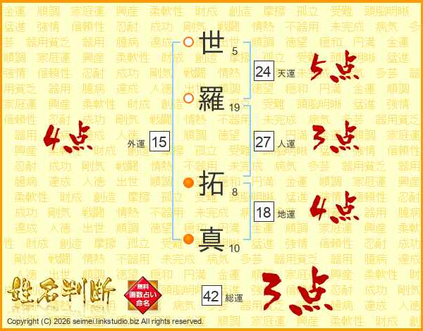 世(5画)羅(19画) 拓(8画)真(10画)