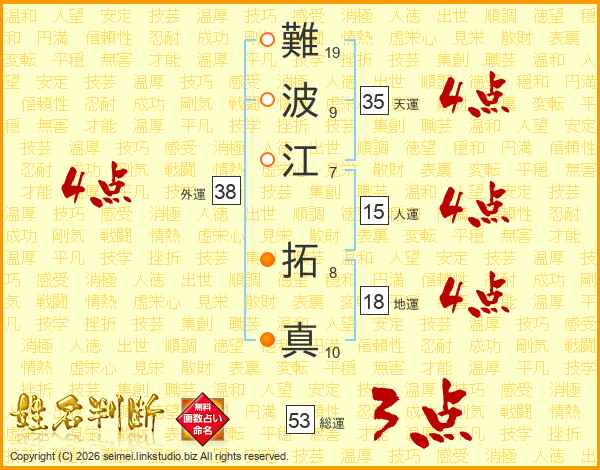 難波江拓真さんの天運は35画の4点!