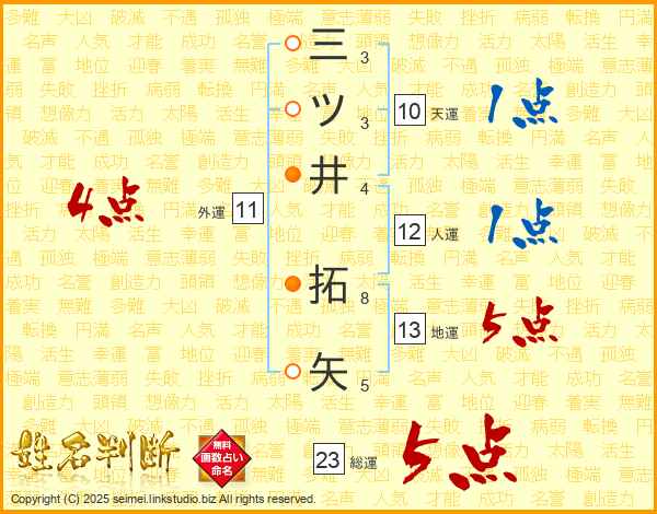 三(3画)ツ(3画)井(4画) 拓(8画)矢(5画)