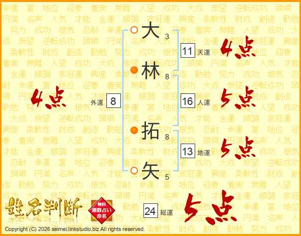 大林拓矢さんの総運は24画の5点!