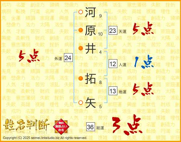 河原井拓矢さんの外運は24画の5点!