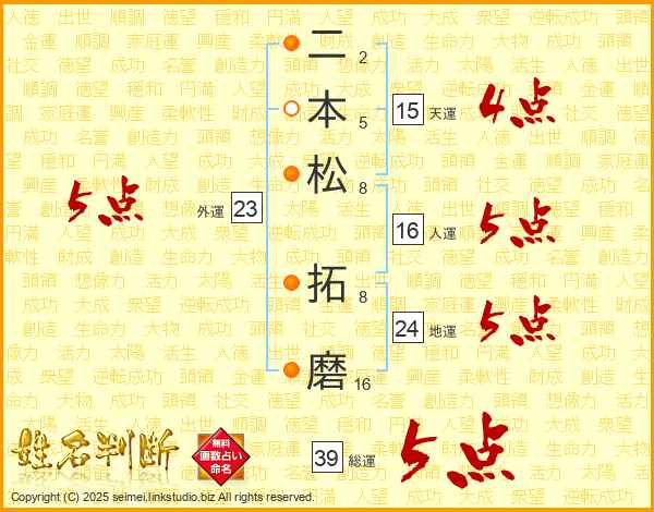 二(2画)本(5画)松(8画) 拓(8画)磨(16画)
