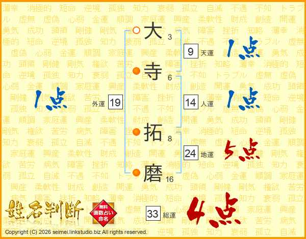 大(3画)寺(6画) 拓(8画)磨(16画)