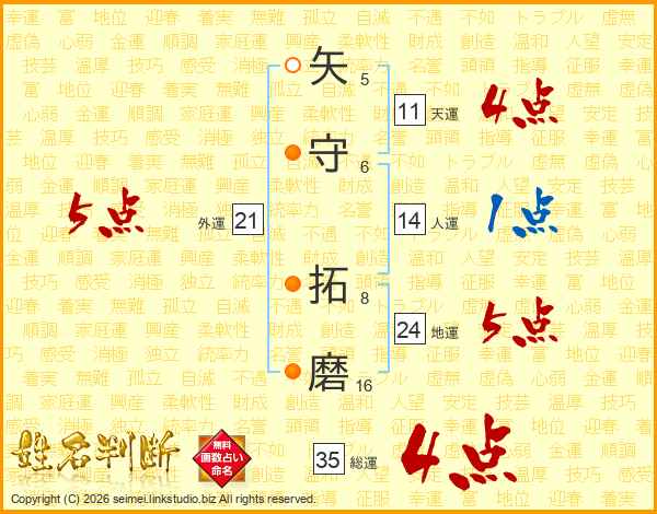 矢守拓磨さんの総運は35画の4点!