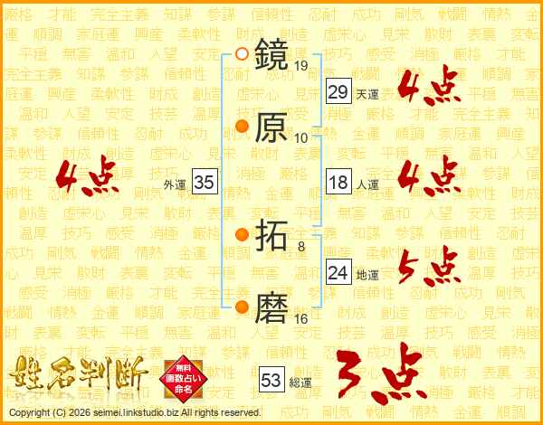 鏡原拓磨さんの総運は53画の3点!