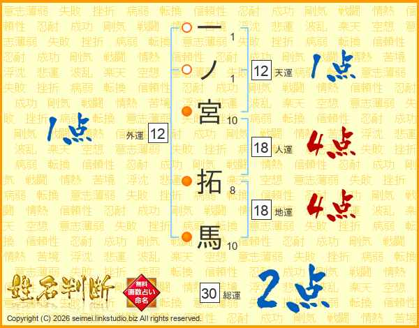 一ノ宮拓馬さんの人運は18画の4点!