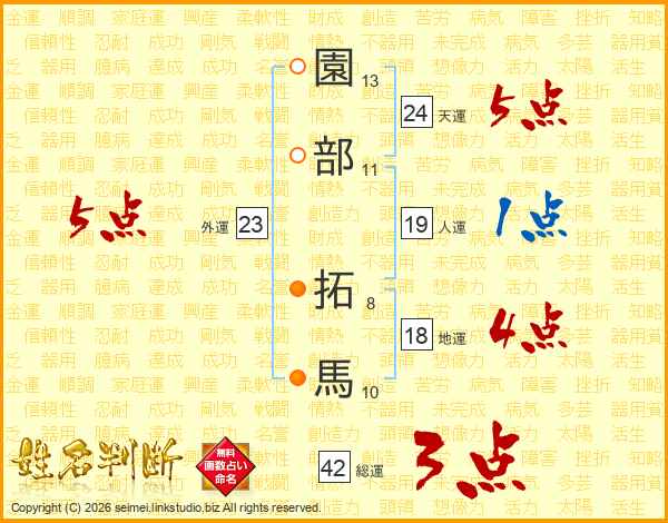 園部拓馬さんの天運は24画の5点!