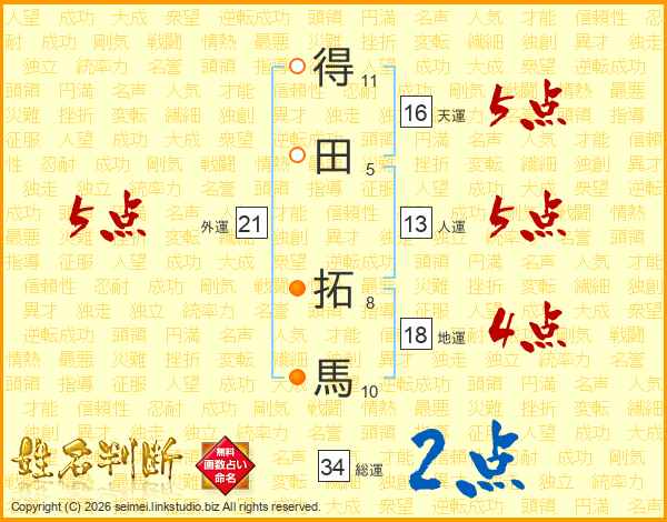 得田拓馬さんの総運は34画の2点!