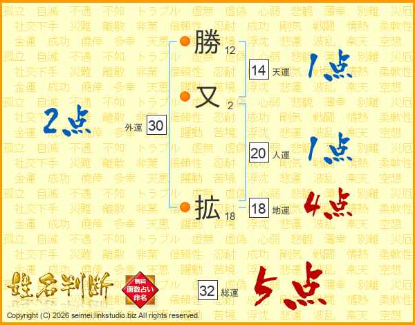 勝又拡さんの総運は32画の5点!