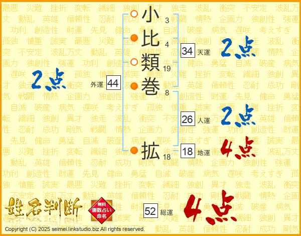 小比類巻拡さんの総運は52画の4点!