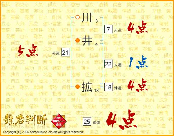 川井拡さんの天運は7画の4点!