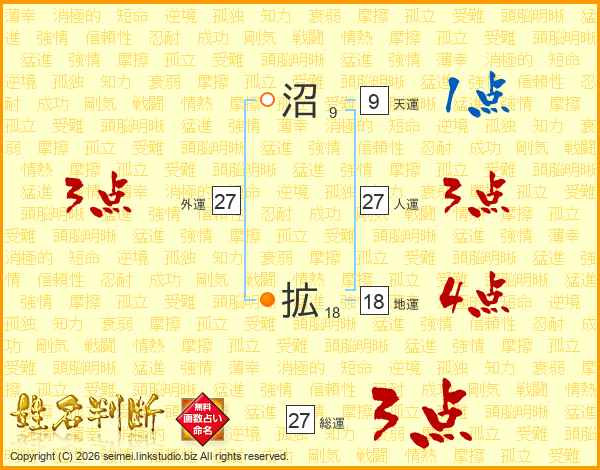 沼拡さんの人運は27画の3点!