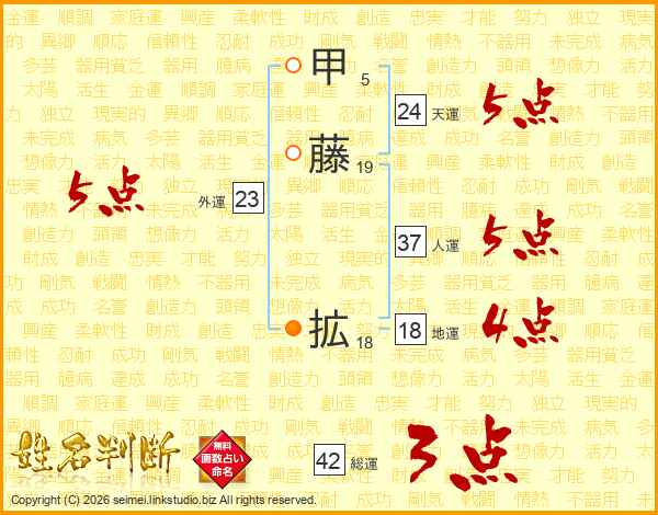 甲藤拡さんの天運は24画の5点!