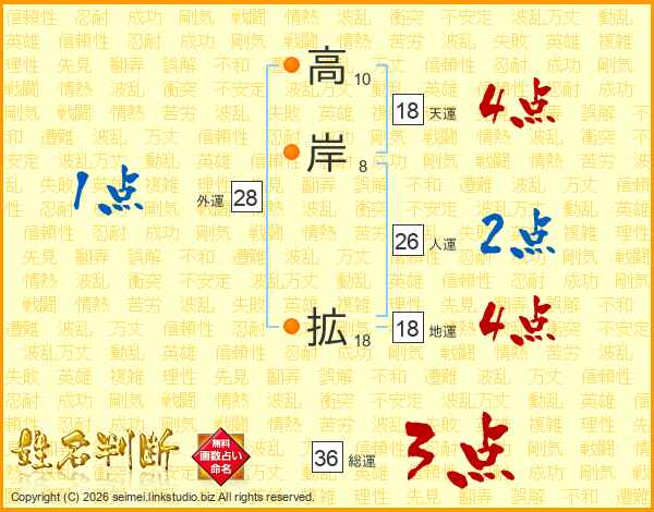 高岸拡さんの天運は18画の4点!