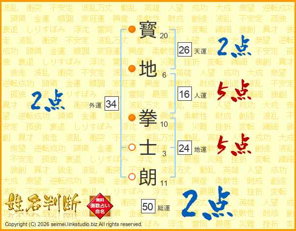 寳地拳士朗さんの天運は26画の2点!