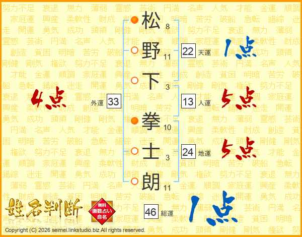 松野下拳士朗さんの総運は46画の1点!